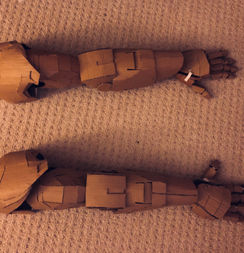 A small project of creating my very first Iron Man helmet lead to more and more time being devoted to creating a full scale suit of armor. First the design is broken into parts in Pepakura, then taped down onto a sheet of cardboard. This is then cut, shaped, and hot glued together to create the physical model. With the help of straps, elastics, and Velcro the suit allows for a large amount of mobility while maintaining it's structure. A final hot rod red and gold paint job gives the final touches.